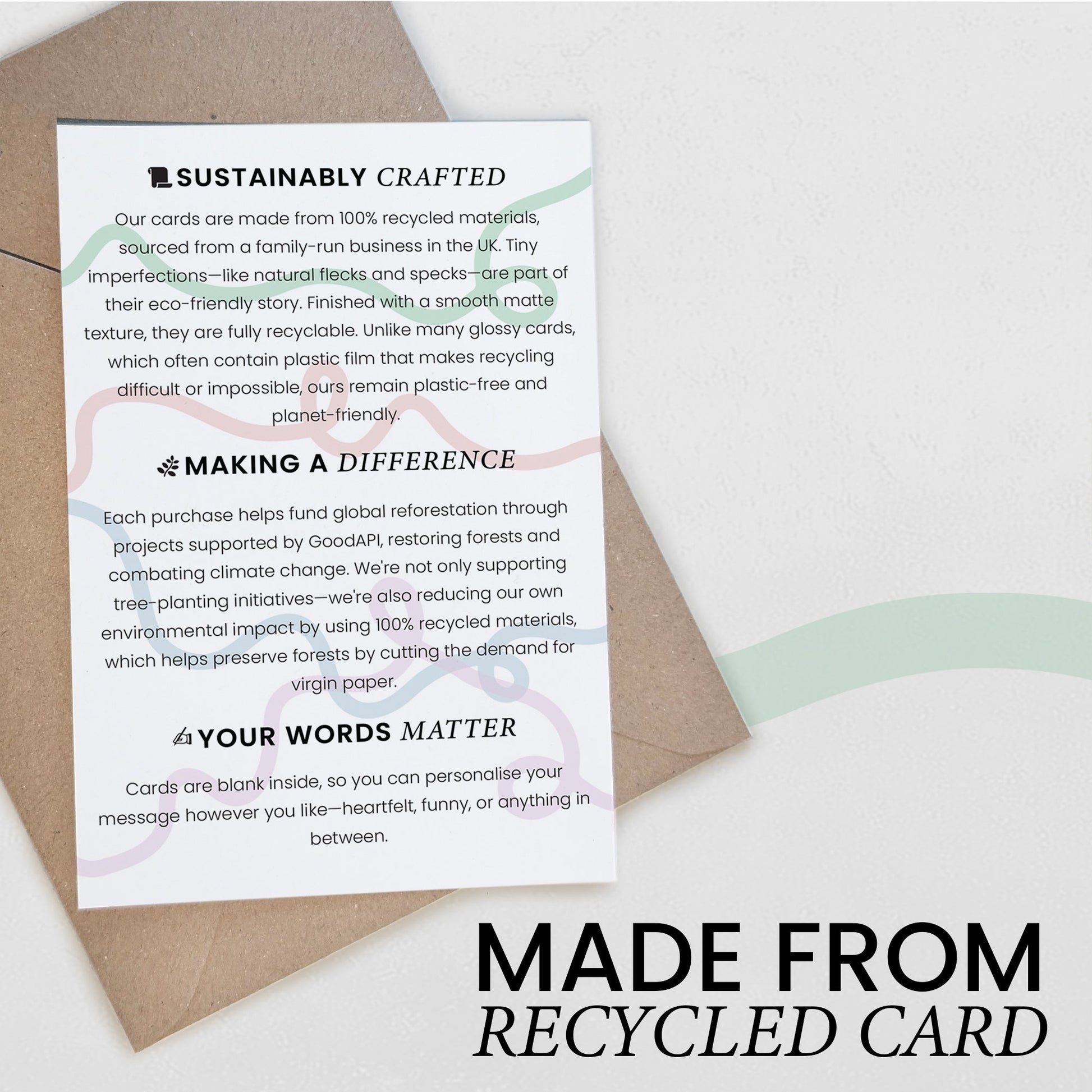 - Material: 100% Recycled 300gsm Card / Matte Finish